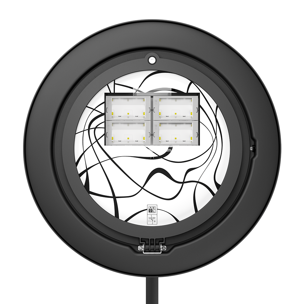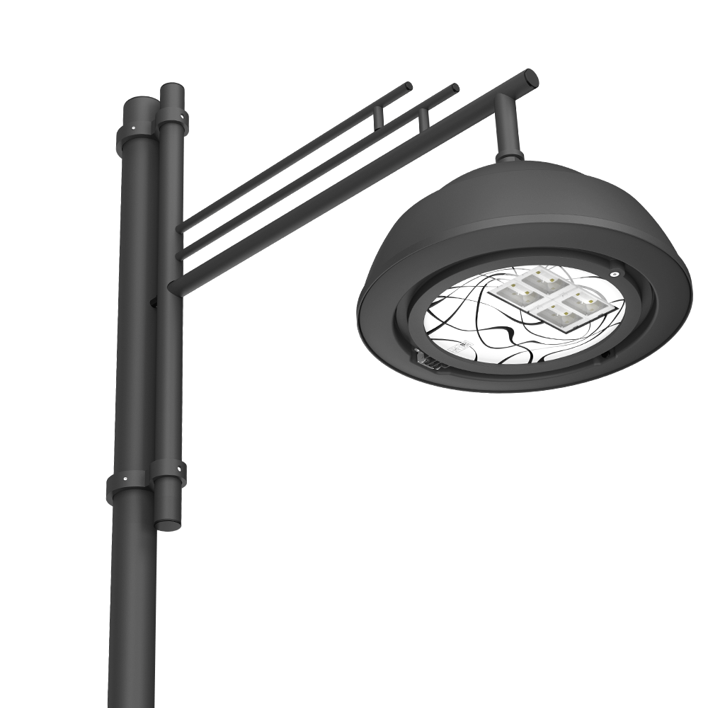 The hemispherical rear cover made of turned aluminium and steel makes ARMONIA a very resistant lighting body, which gives the surrounding landscape harmony and lightness, without compromising visual comfort and versatility.