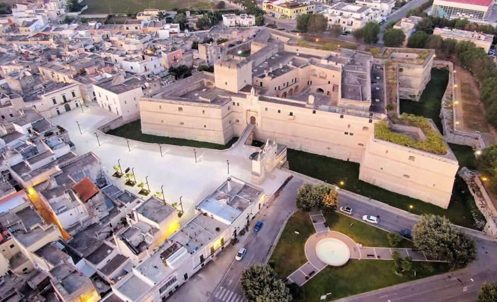 The new LED public urban lighting of Castello Square highlights the area of cultural interest.