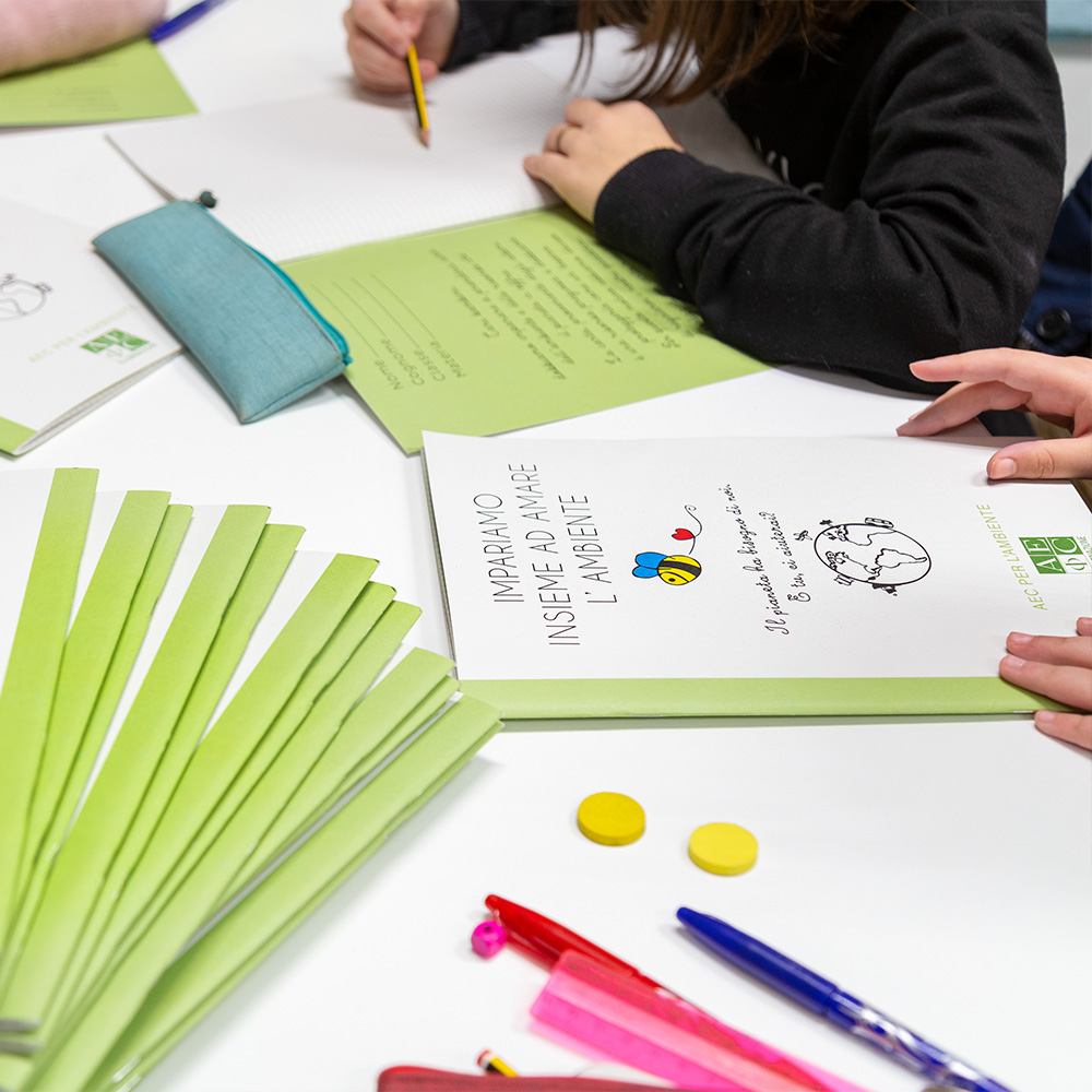 In keeping with our sustainability values and with the intent of passing them on to new generations, we donated steel water bottles and recycled paper notebooks to elementary school children, with the aim of raising awareness among children and adults towards a more responsible use of resources.